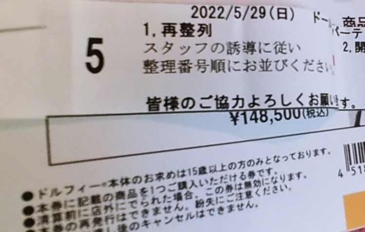 『購入券もらえた!』とかなーり後方にいた家族に連絡したら『転売屋に勝ったな!』とのコメント(^o^)v